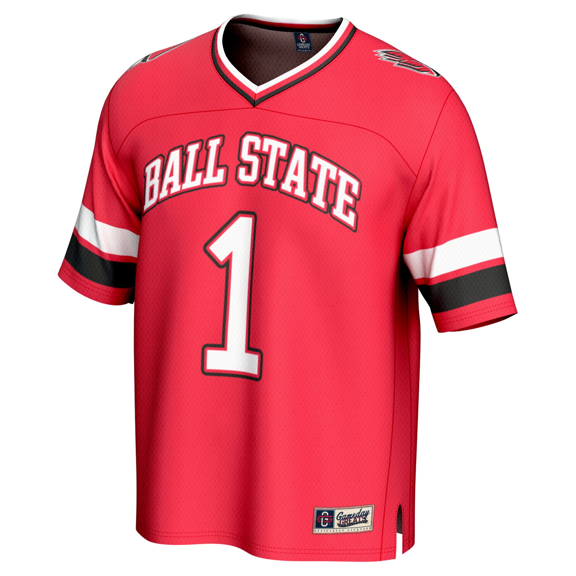 Rep the Ball State Cardinals in style with this #1 Lightweight Collegiate Football Fashion Jersey from GameDay Greats. This jersey features smooth, fully sublimated graphics that wont crack or peel, ensuring a vibrant, long-lasting look. The lightweight and breathable polyester fabric provides exceptional comfort for all-day wear, making it perfect for cheering on the Ball State Cardinals from the stands or sporting your team spirit around town.