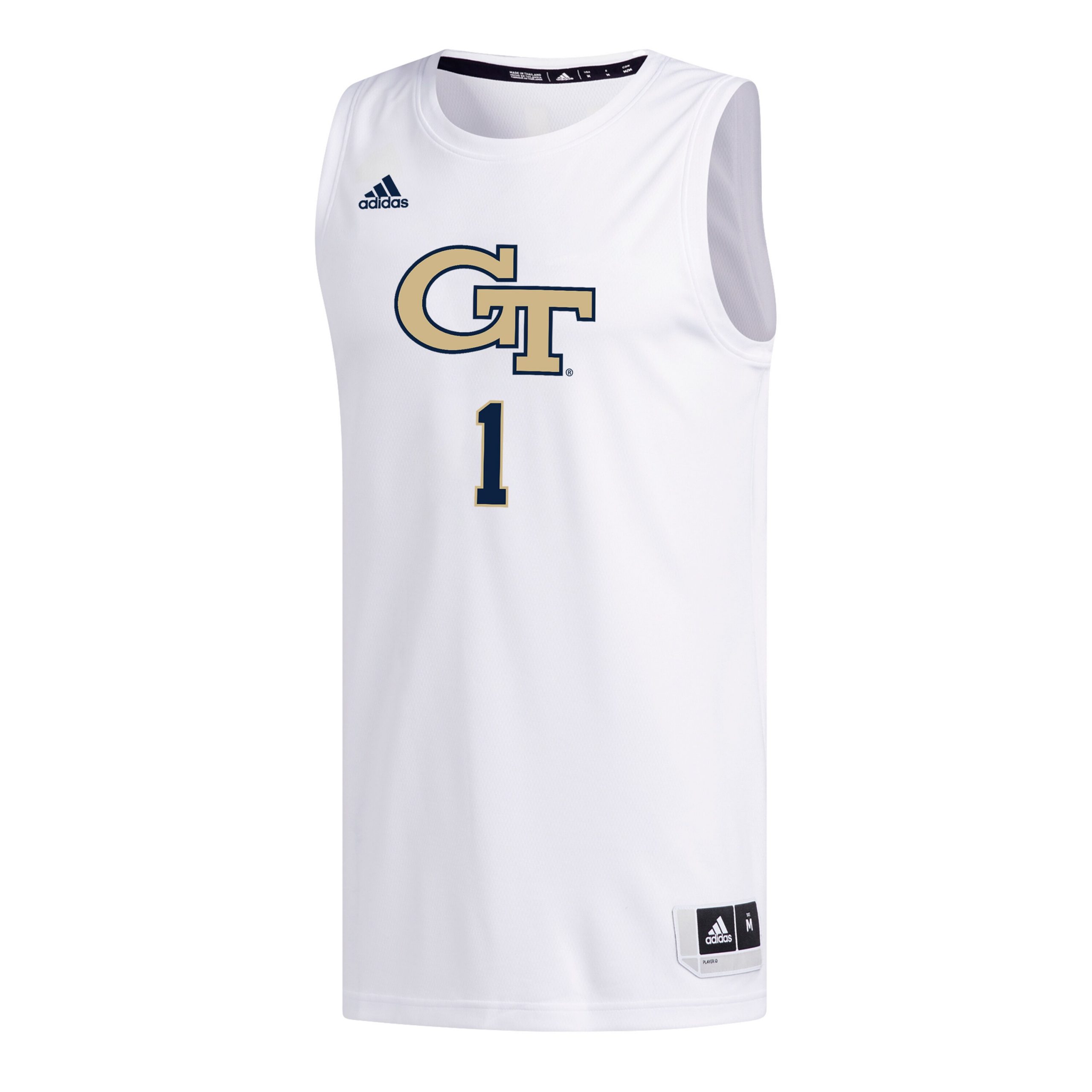 Show off your dedication to the Georgia Tech Yellow Jackets with this #1 Replica Basketball Jersey from adidas. This jersey features breathable mesh side panels to keep you cool and comfortable whether youre on the court or cheering from the stands. The heat-sealed graphics and sewn-on woven jock tag at the hem add premium, authentic touches that will make you feel like part of the team.