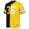 Pay homage to one of the greatest players in Pittsburgh Steelers history with this Jerome Bettis 1996 Retired Player Replica Jersey from Mitchell & Ness. The breathable mesh bodice keeps you cool and comfortable, while the droptail hem with side splits provides extra coverage and ease of movement, making this jersey ideal for game day or everyday wear. The stitched tackle twill applique and screen print graphics showcase Jerome Bettiss iconic number and team details, giving you an authentic look that pays tribute to one of the NFLs all-time greats.