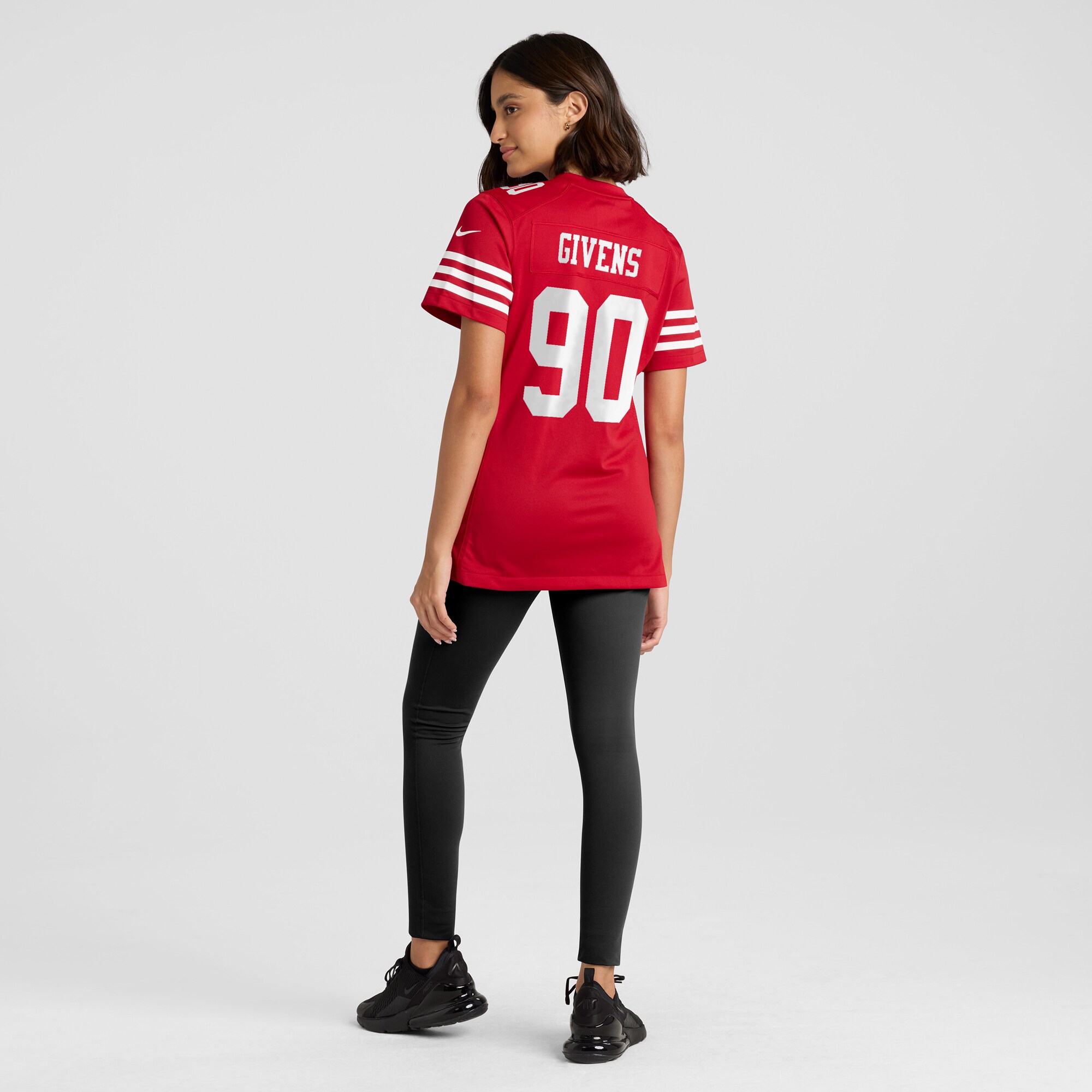 Rep your favorite team with this Kevin Givens San Francisco 49ers Game Jersey from Nike. This jersey is tailored for a flattering fit designed specifically for women, ensuring you look and feel your best while repping the San Francisco 49ers. The mesh side panels provide extra breathability, keeping you cool and comfortable whether youre cheering from the stands or watching from home.