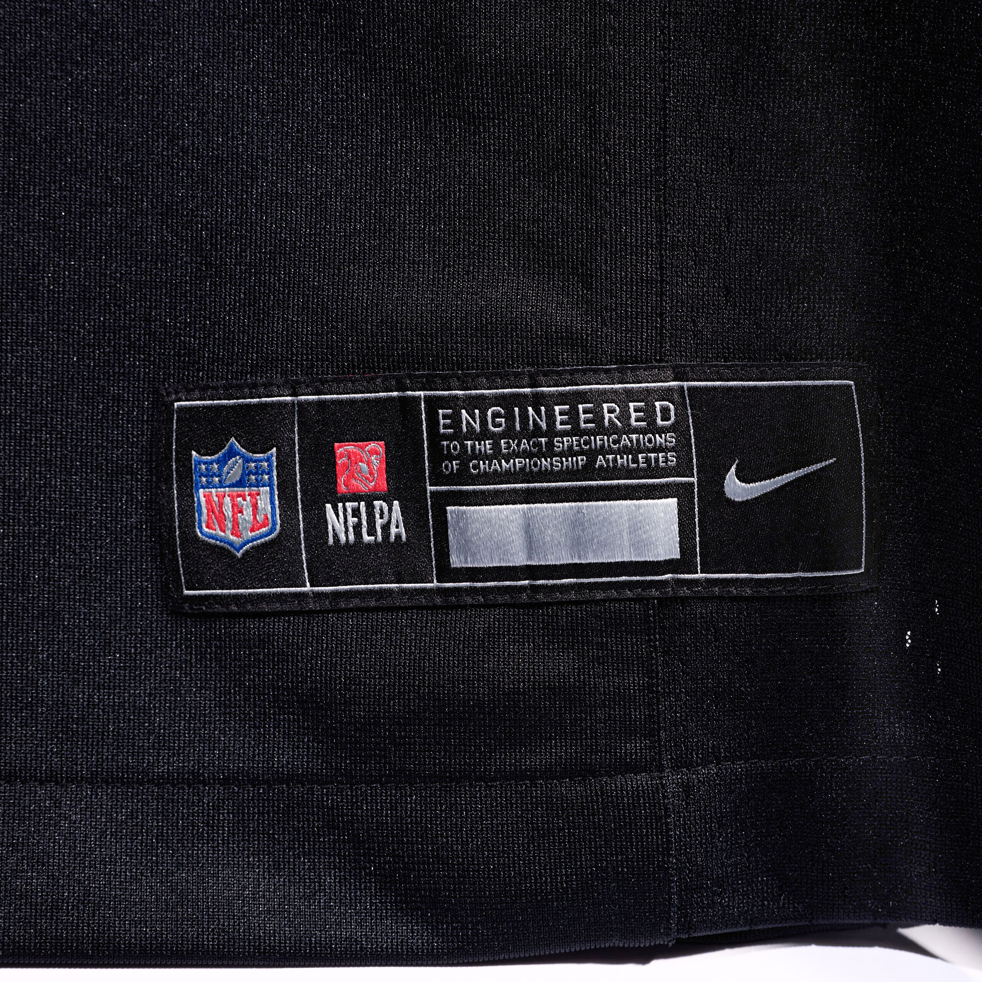 - Stitched-down NFL Shield at neck